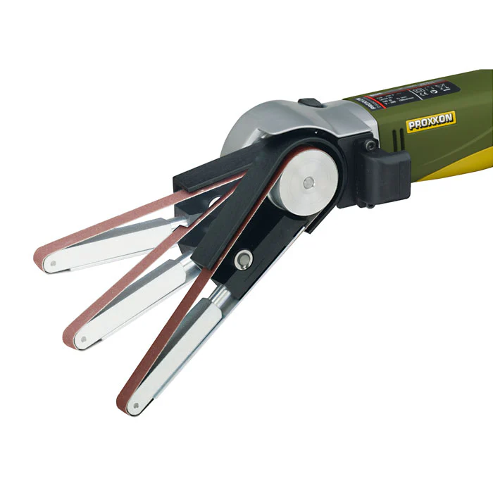 A light, compact and user-friendly unit that makes sanding in tight spaces more convenient. Used in modeling, sculpturing, tool- and die-making or the automotive sector. Comes with two 80 grit and two 180 grit sanding belts.
